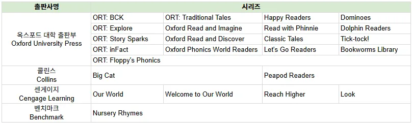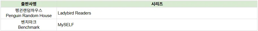 540년 넘는 역사를 지닌 옥스포드 대학출판부, 200년 이상 역사의 콜린스 출판사, 펭귄 랜덤 하우스와 미국의 밥북스, 벤치마크사까지! 이런 좋은 책은 리딩앤밖에 없습니다.