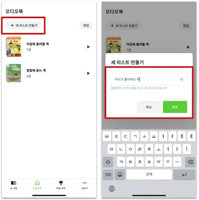 우리 아이가 좋아하는 책들만 모아 플레이리스트를 만들 수 있어요!