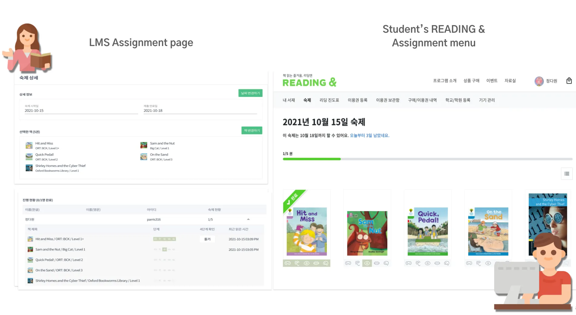 LMS is the teacher’s page where you can manage class and student’s reading progress