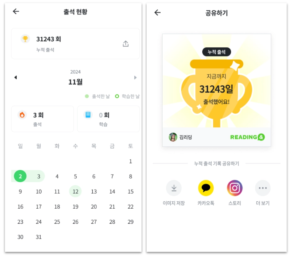 나의 출석 기록을 다운로드하고 공유할 수 있어요!