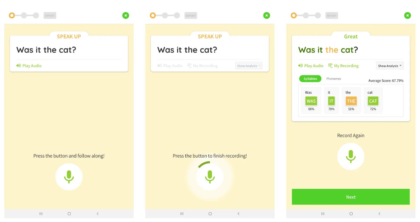 Step 4 is where children practice Speaking by saying key sentences from the book themselves.